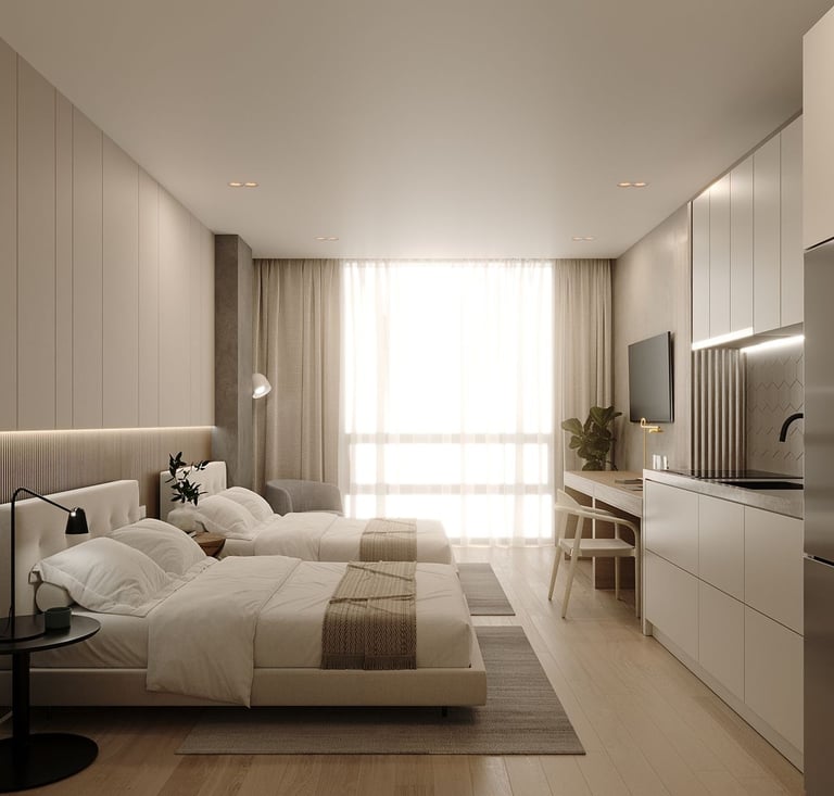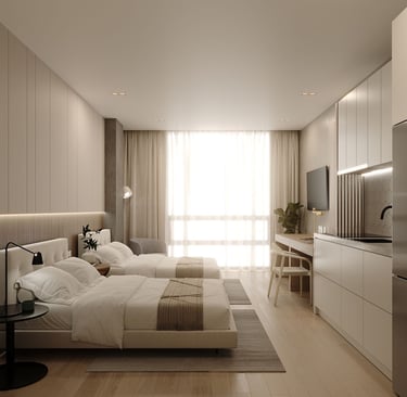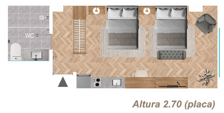 NOTA ACLARATORIA : Estas imágenes, renders, ilustraciones , planos y su contenido son una representación meramente artística y en consecuencia pueden presentar variaciones respecto del producto final entregado. Las Suites se entregan sin acabados, piso afinado, placa o cubierta a la vista, paredes pañetadas, y *las imágenes ilustran unos acabados sugeridos, una forma o visión de cómo una persona podría llegar a adecuarlo.